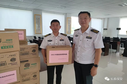 ? ?員工們收到慰問品后都非常高興和激動,一致表示,長春市總工會開展的這次送清涼活動非常好,帶來了“娘家”對員工們的關(guān)心與關(guān)愛,這將極大激發(fā)員工們的工作熱情和干勁,同時(shí)也對工會組織更加信任、更加依賴。他們將把工會的這份關(guān)心與關(guān)愛化做強(qiáng)大的工作動力,繼續(xù)全力保安好客戶單位安全,協(xié)助公安機(jī)關(guān)維護(hù)好社會治安,做好維穩(wěn)處突,維護(hù)社會和諧、穩(wěn)定,為迎接黨的“二十大”勝利召開,貢獻(xiàn)長春保安智慧、力量!