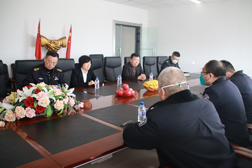 ? ? ? 2023年1月16日下午,吉林省公安廳治安管理總隊保安監(jiān)管支隊支隊長李偉等三位領導蒞臨長春保安集團調(diào)研、指導安保工作。長春保安集團總經(jīng)理楊向榮,常務副總經(jīng)理范勝田,副總經(jīng)理付愛民與領導們進行了座談。