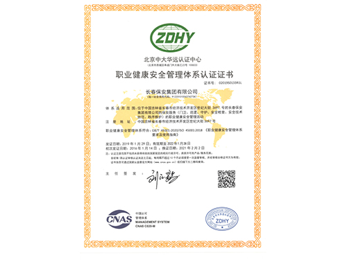 職業(yè)健康安全管理體系認(rèn)證證書
