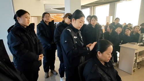 長春保安集團銀盾保安培訓學校教官,結(jié)合安檢員崗位職責,從行為禮儀、消防安全、應急處突、隊列訓練等方面嚴作風,強業(yè)務,塑形象,從每一個細節(jié)入手,耐心講解示范,嚴抓細扣,切實規(guī)范隊伍秩序和能力,讓學員學有標桿,練有標準。