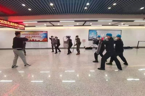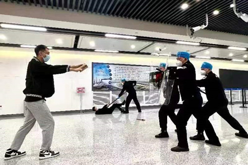 ? 駐龍嘉機(jī)場(chǎng)防暴檢測(cè)中隊(duì)在本次活動(dòng)中,參加了安檢和防暴恐兩個(gè)項(xiàng)目的演練。安檢演練主要通過駐勤保安員通過技術(shù)手段,對(duì)進(jìn)出港乘客所攜帶的物品進(jìn)行嚴(yán)格安檢,及時(shí)發(fā)現(xiàn)易燃、易爆及違禁品,有效避免漏檢造成安全事故。防暴恐突發(fā)事件演練,主要現(xiàn)場(chǎng)模擬突發(fā)歹徒在機(jī)場(chǎng)內(nèi)行兇鬧事,駐勤保安員及時(shí)發(fā)現(xiàn)后,迅速啟動(dòng)應(yīng)急突發(fā)事件預(yù)案,通過保安員集體合圍、正確使用防暴器械有效控制住歹徒,然后迅速報(bào)警,將歹徒及時(shí)交給警方處置。演練活動(dòng)效果逼真、實(shí)戰(zhàn)性強(qiáng),極大增強(qiáng)了全體駐勤保安員的安全防范意識(shí),大幅提升了保安員安檢水平和有效處置暴恐突發(fā)事件的應(yīng)急反應(yīng)、有效處置能力。